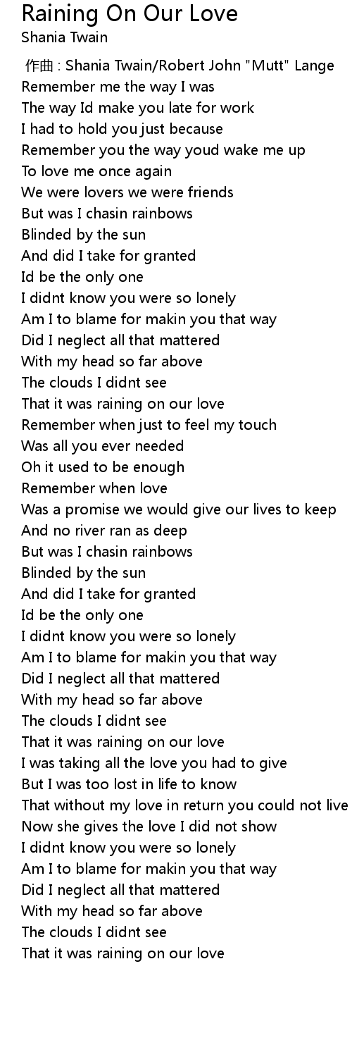 | [00:00.00] | 作曲 : Shania Twain/Robert John "Mutt" Lange |