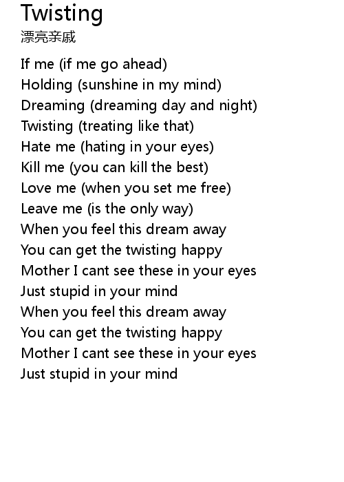 | [00:15.01] | Twisting (treating like that) |