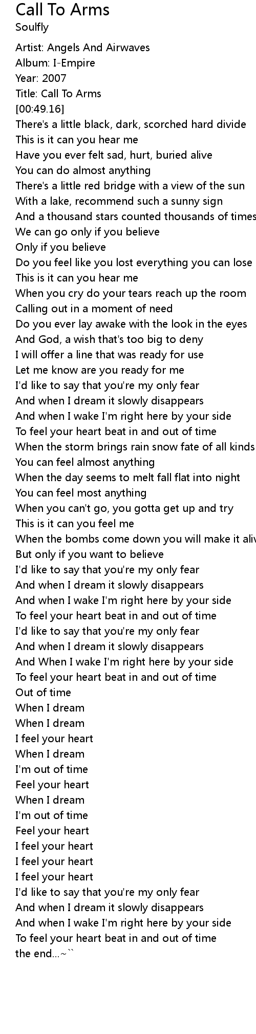 | [00:22.55] | Title: Call To Arms |