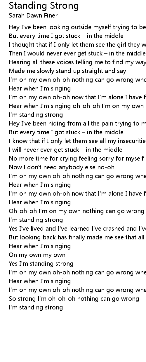 | I' m on my own ohoh nothing can go wrong when I' m standing strong | |