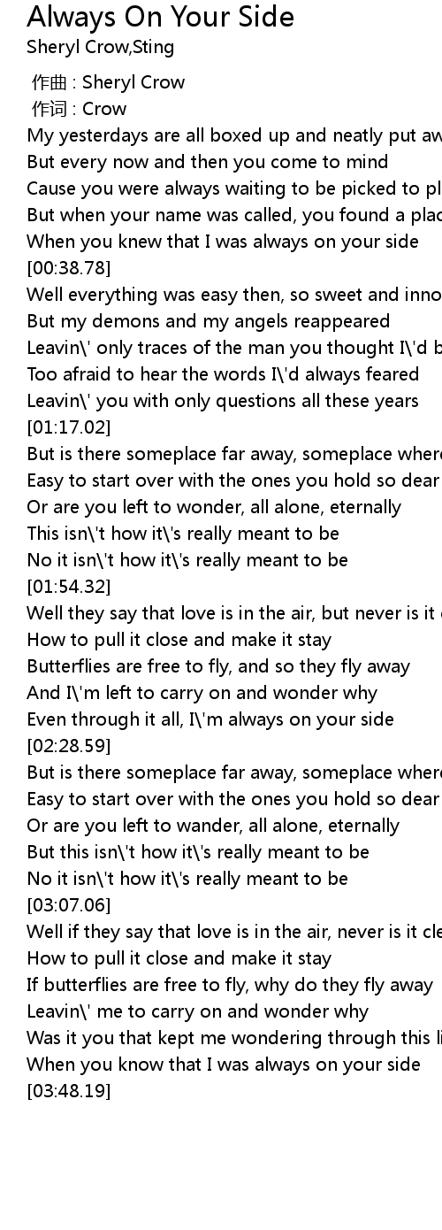 | [02:23.67] | Even through it all, I\'m always on your side |
