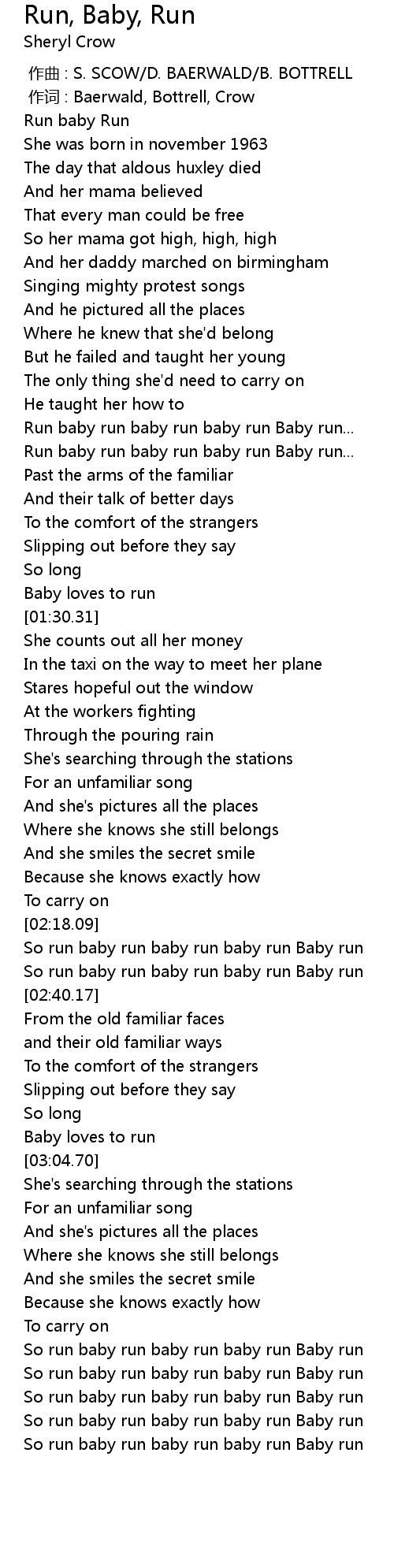 | [03:59.64] | So run baby run baby run baby run Baby run |