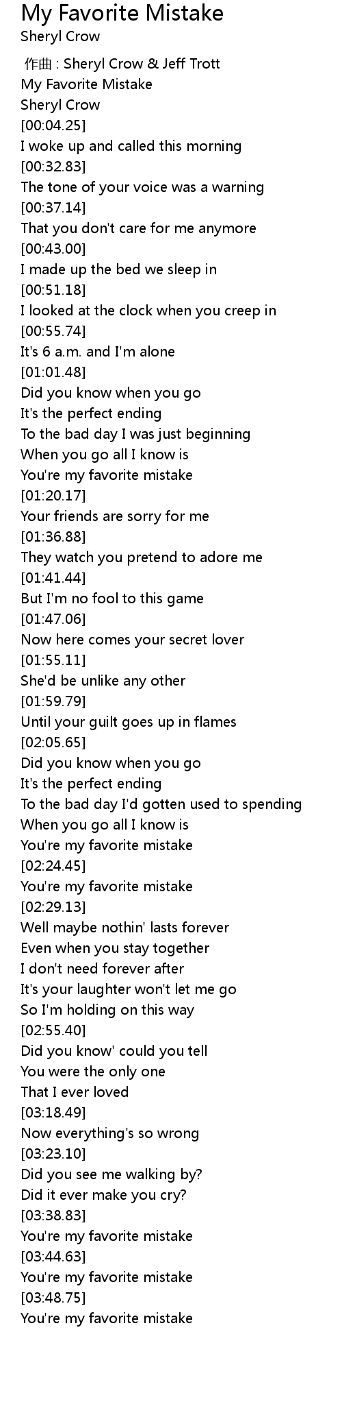 | [02:25.57] | You're my favorite mistake |