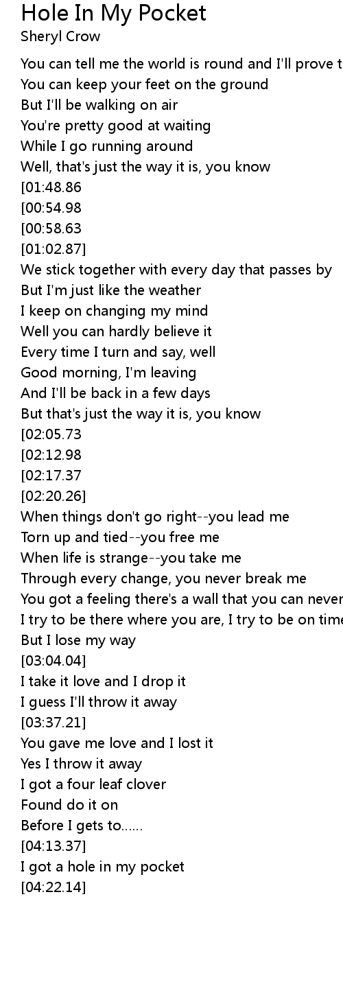| [04:16.04] | I got a hole in my pocket |