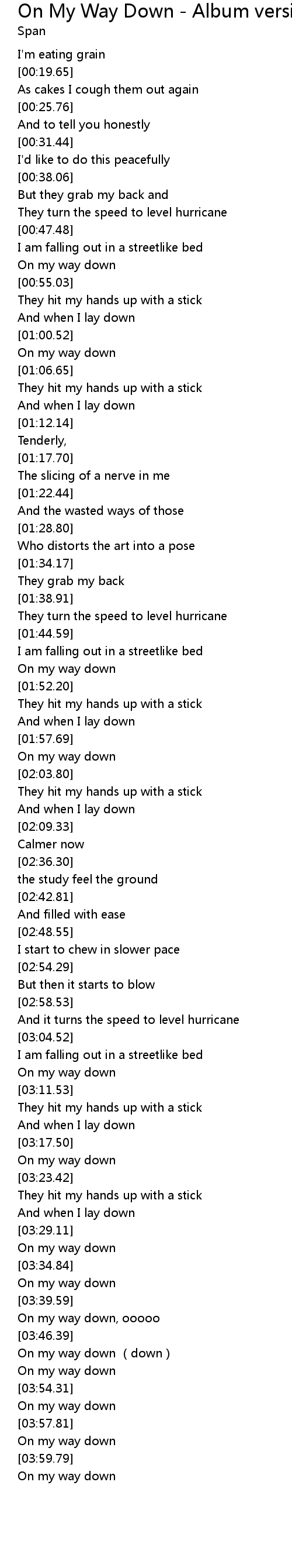 | Song | On My Way Down - Album version/2003 Re-recording |