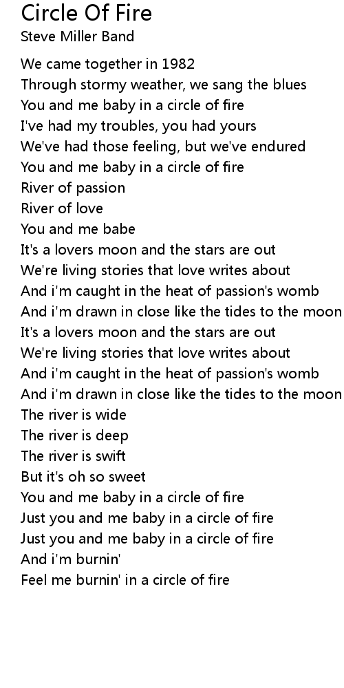 Feel me burnin' in a circle of fire |