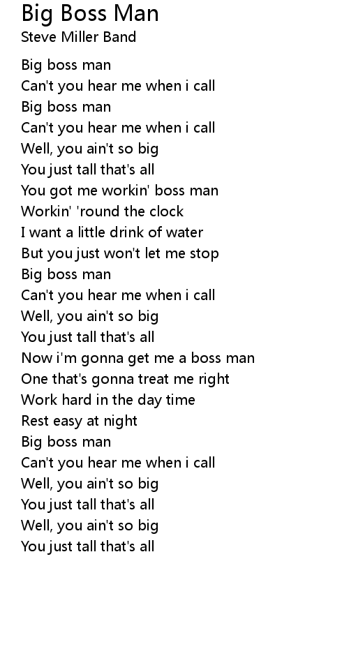 Now i'm gonna get me a boss man |