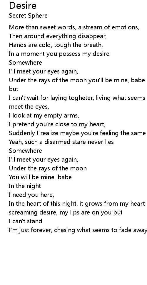 In the heart of this night, it grows from my heart ...deep from my heart, it's screaming desire, my lips are on you but |