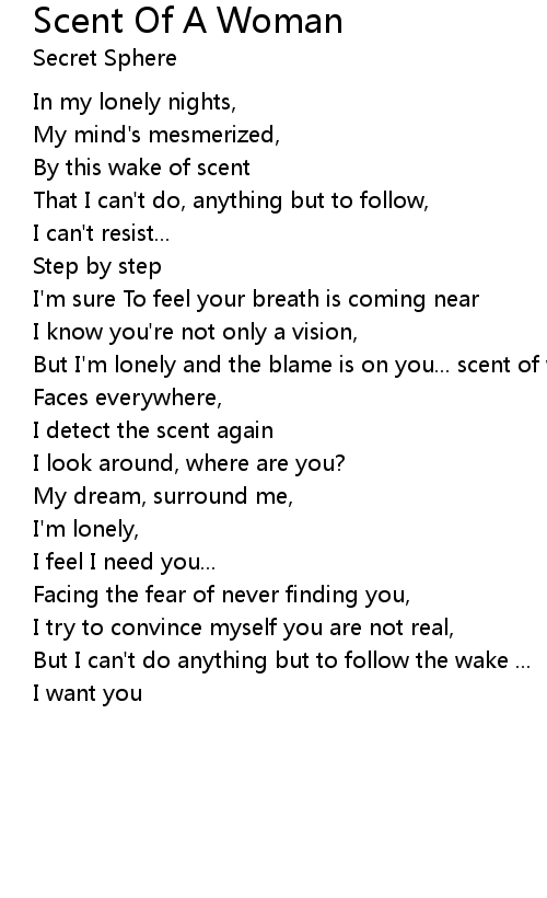 But I'm lonely and the blame is on you... scent of woman on me |