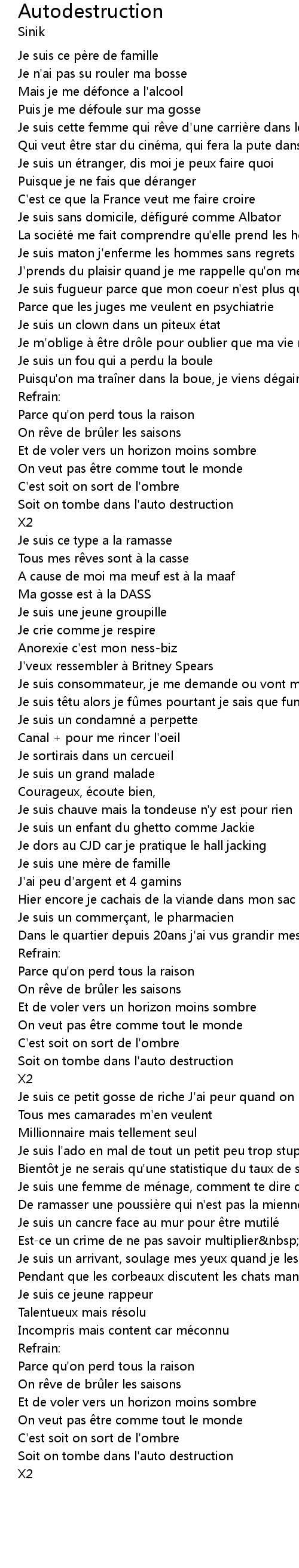 | Je m' oblige à tre dr le pour oublier que ma vie ne l' est pas | |