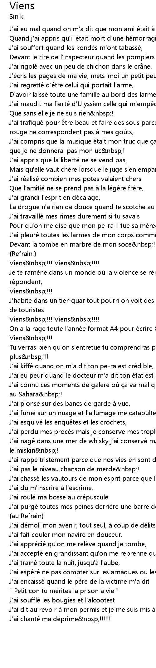 | J' ai rappe tristement parce que nos vies en sont de m me, | |