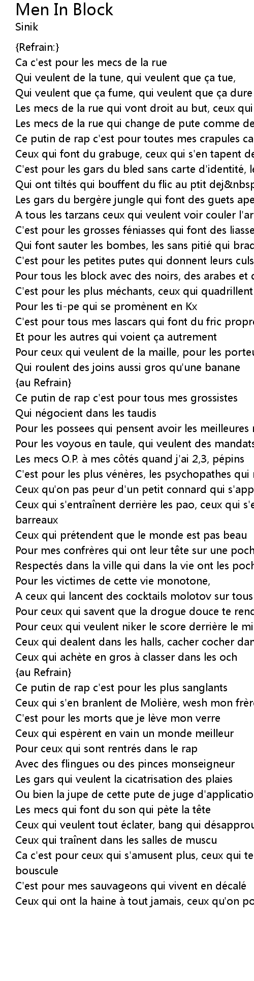 | Ce putin de rap c' est pour toutes mes crapules cache es sous une capuche | |