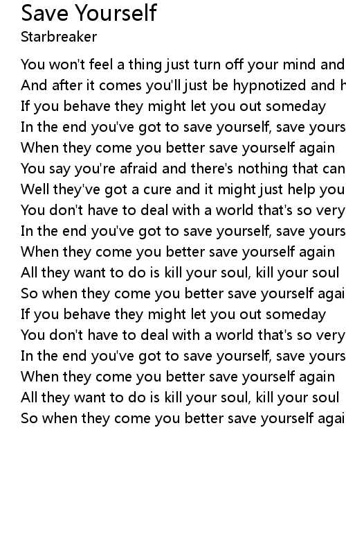 In the end you've got to save yourself, save yourself |