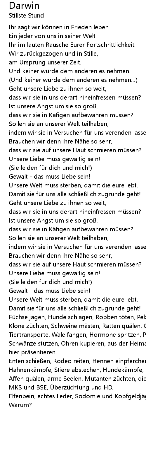| Fü chse jagen, Hunde schlagen, Robben t ten, Pelze tragen. | |