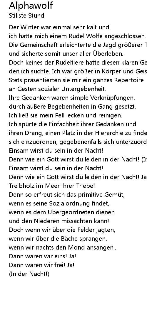 | ich hatte mich einem Rudel Wölfe angeschlossen. | |