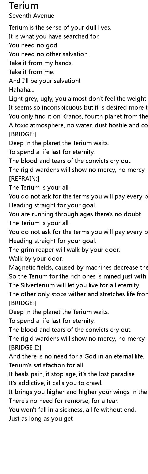 Terium Lyrics