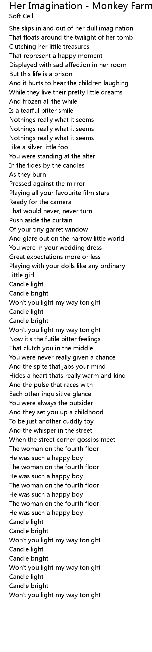 She slips in and out of her dull imagination |
