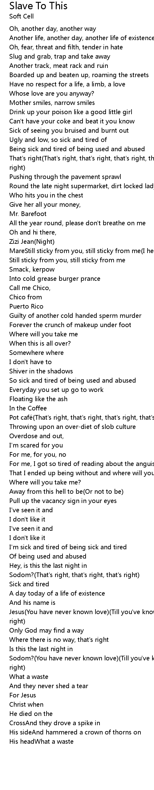 | So sick and tired of being used and abused | |