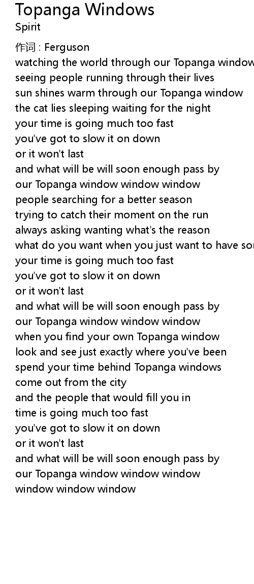 | spend your time behind Topanga windows | |