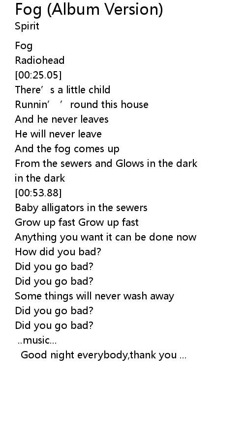 | [01:51.51] | Did you go bad? |