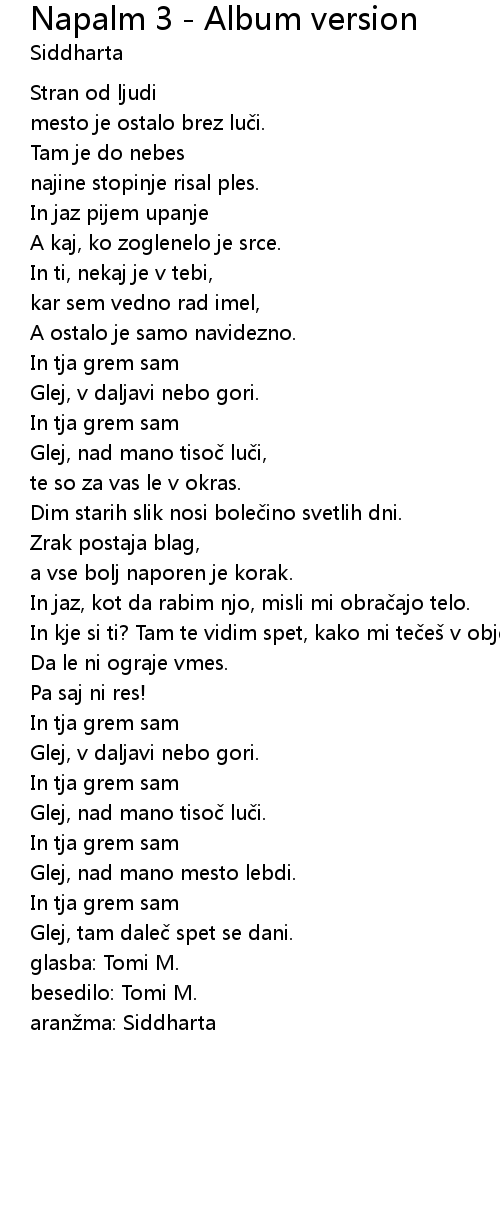 | In kje si ti? Tam te vidim spet, kako mi te e v objem. | |