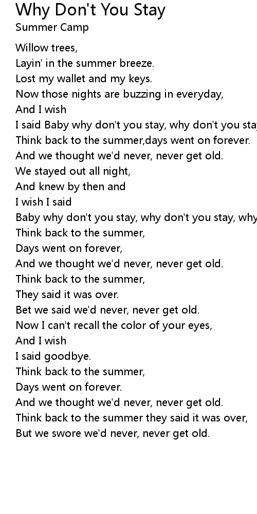 Baby why don't you stay, why don't you stay, why don't you stay? |