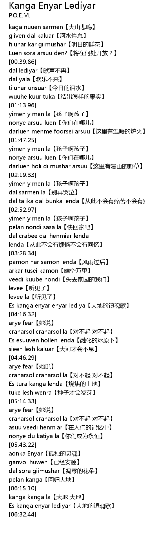 | [06:23.91] | Es kanga enyar lediyar【大地的镇魂歌】 |