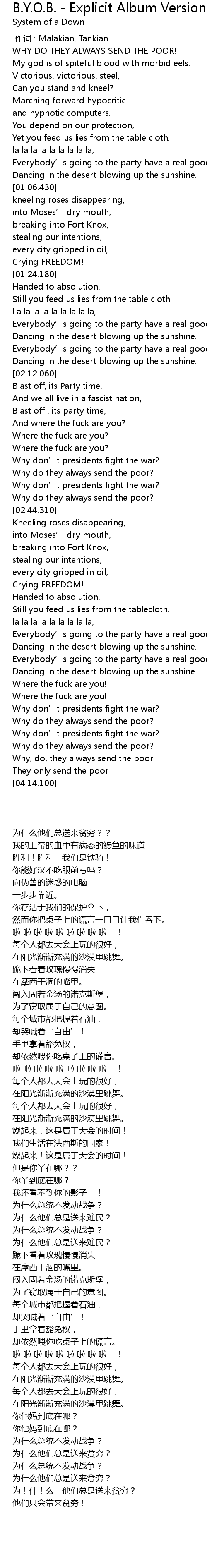 | [00:00.00] | 作词 : Malakian, Tankian |