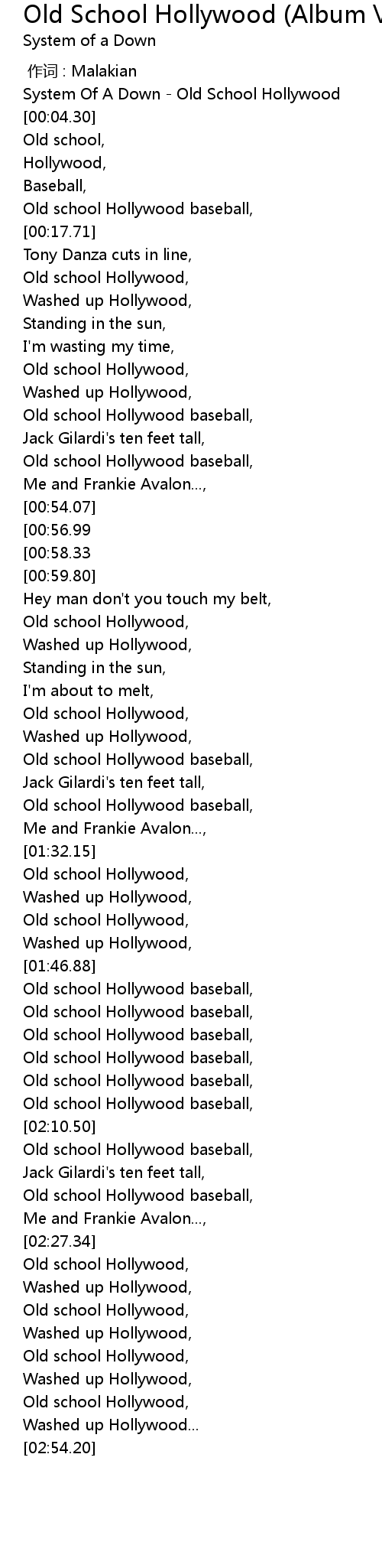 | [00:00.00] | System Of A Down Old School Hollywood |