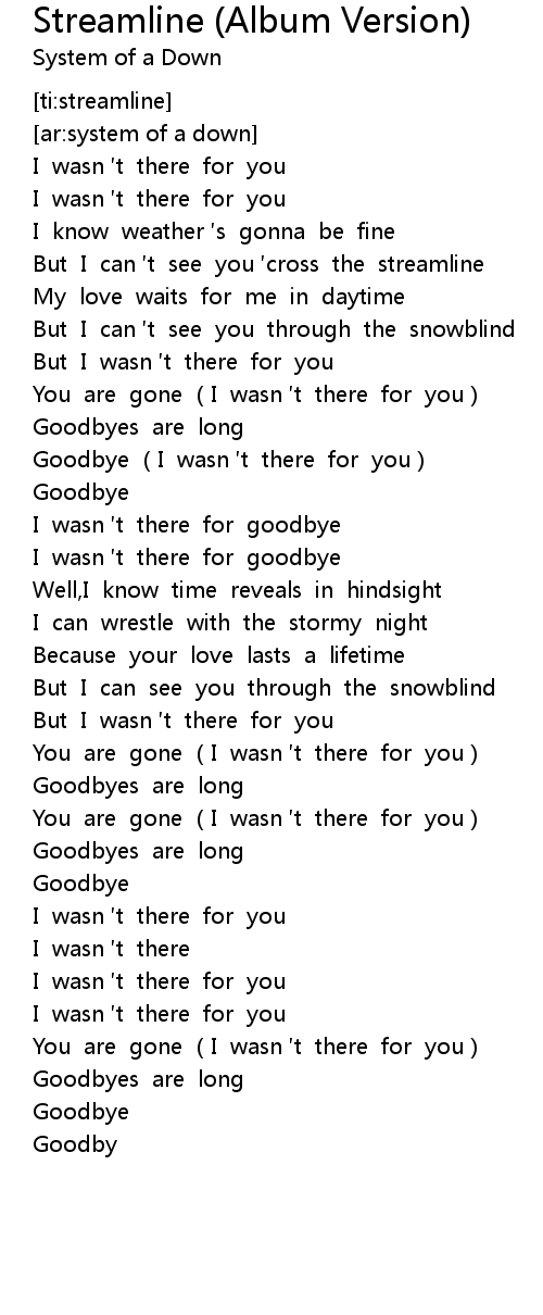 | [00:42.09] | But I can t see you cross the streamline |