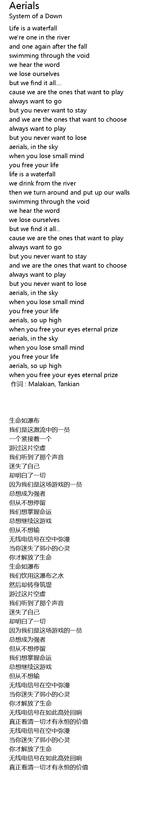 | [00:00.00] | 作词 : Malakian, Tankian |