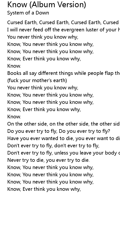 | Know, Ever think you know why, | |