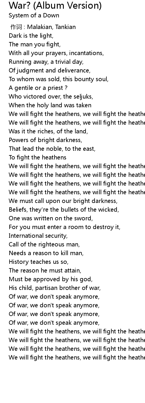 | [00:47.15] | We will fight the heathens, we will fight the heathens |