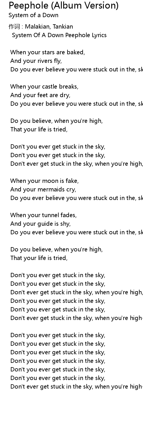 | System Of A Down Peephole Lyrics | |