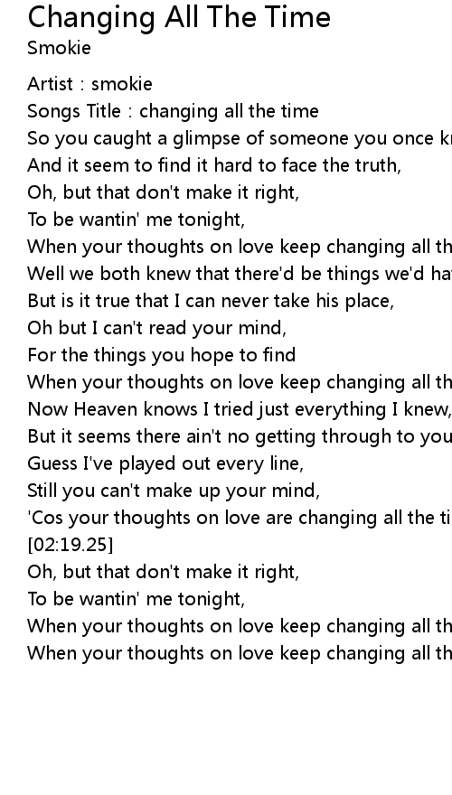 | [01:56.73] | ' Cos your thoughts on love are changing all the time. |