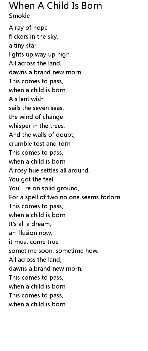 | Song | When A Child Is Born |