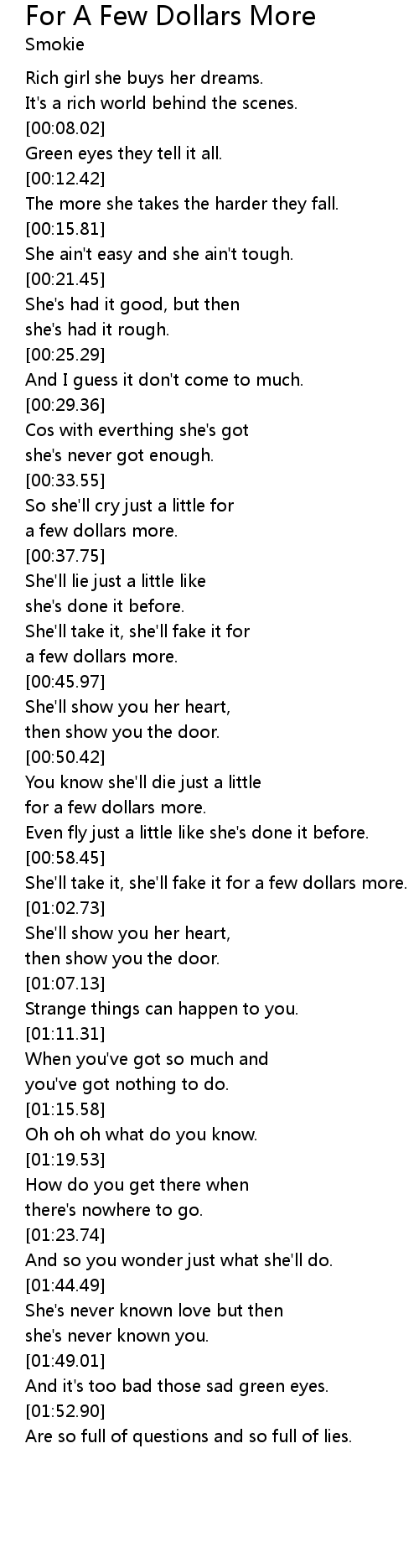 For A Few Dollars More Lyrics