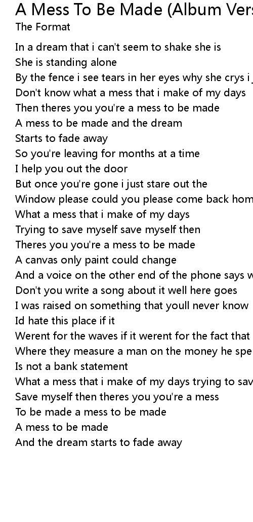 Theres you you're a mess to be made |