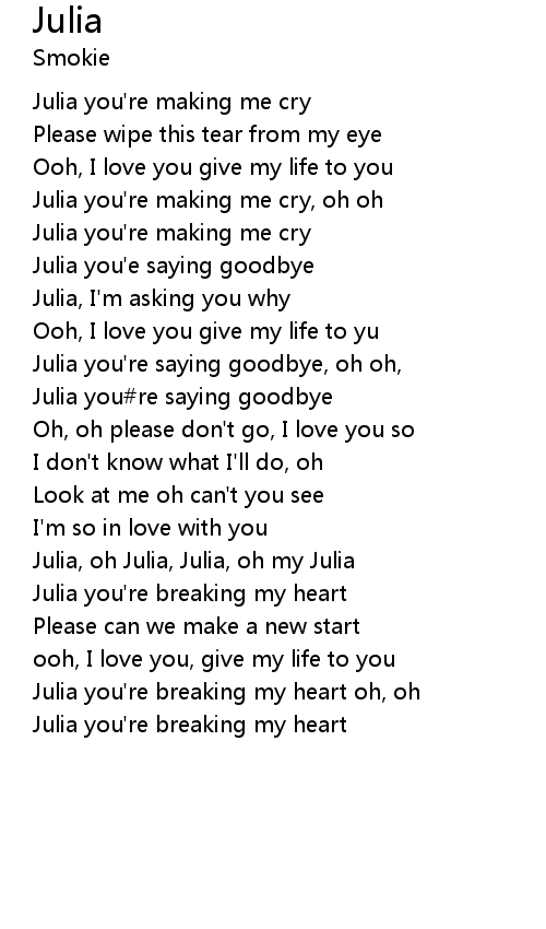 Julia you're breaking my heart |
