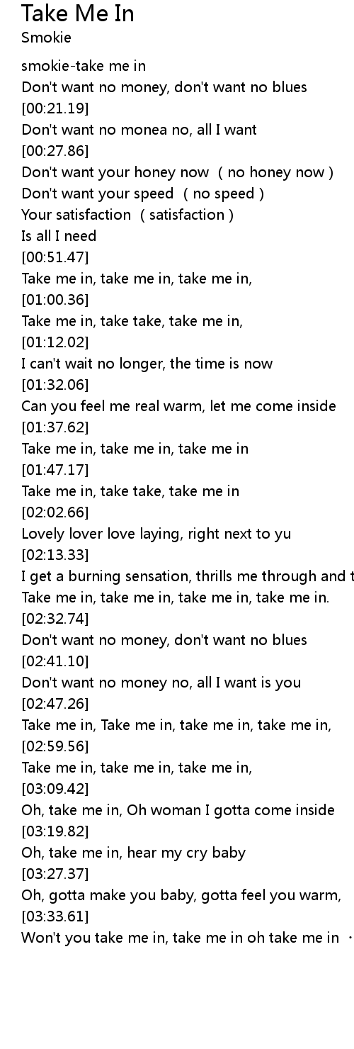 | [02:21.00] | Take me in, take me in, take me in, take me in. |