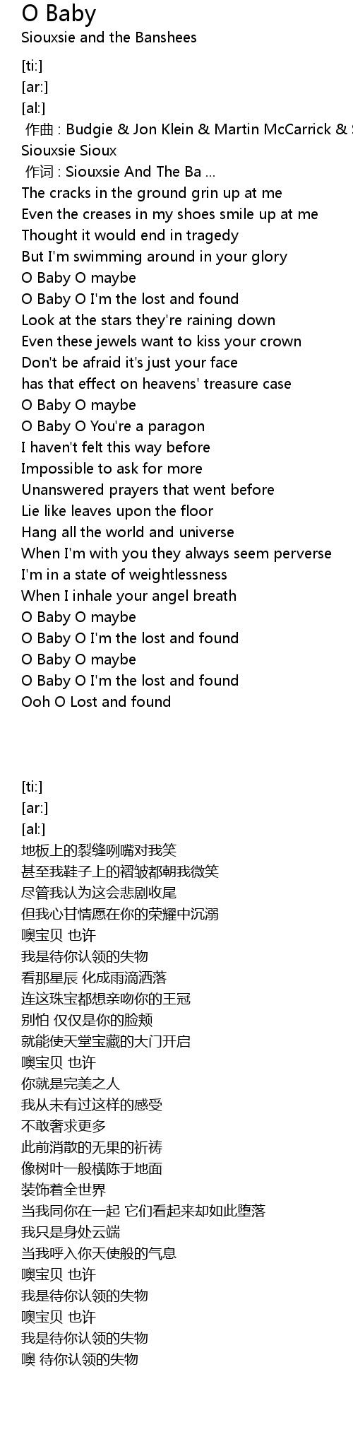 | [00:44.32] | O Baby O I'm the lost and found |