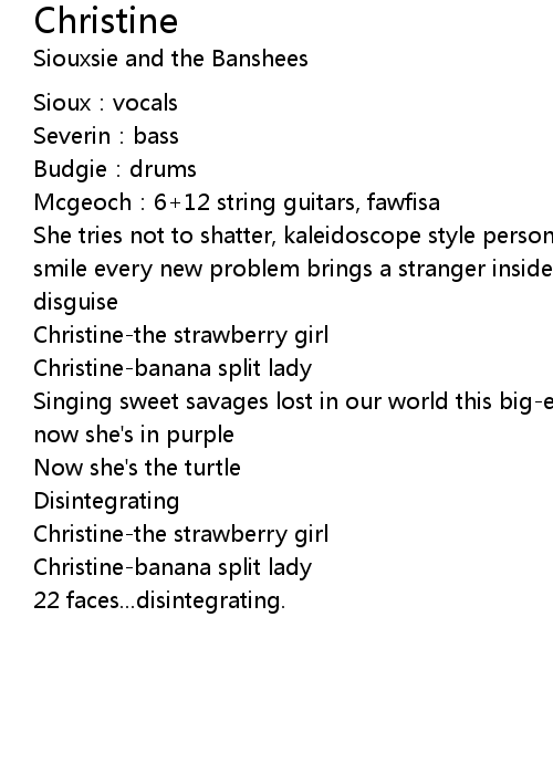 | She tries not to shatter, kaleidoscope style personality changes behind her red smile every new problem brings a stranger inside helplessly forcing one more new disguise | |
