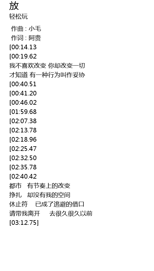 | [00:34.72] | 才知道 有一种行为叫作妥协 |