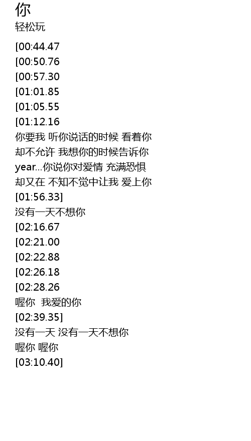 | [03:03.01] | 喔你 喔你 |