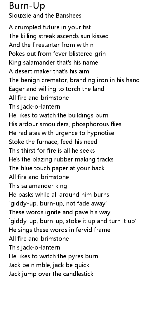 `giddy-up, burn-up, not fade away' |