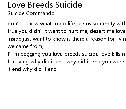 | I’m begging you love breeds suicide love kills me inside you were my reason for living why did it end why did it end you were my sunshine, my living why did it end why did it end |