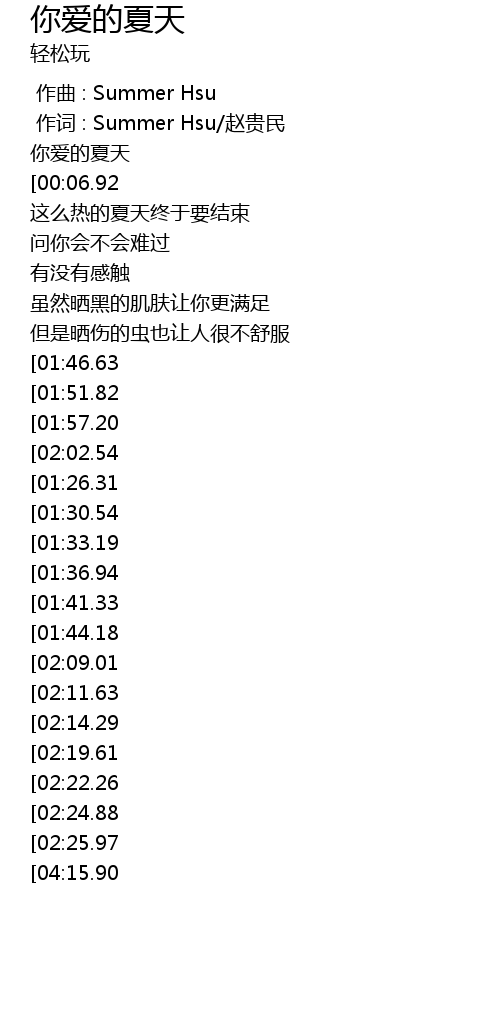 | [03:22.92][01:46.63][01:03.99] | 你爱的夏天 |