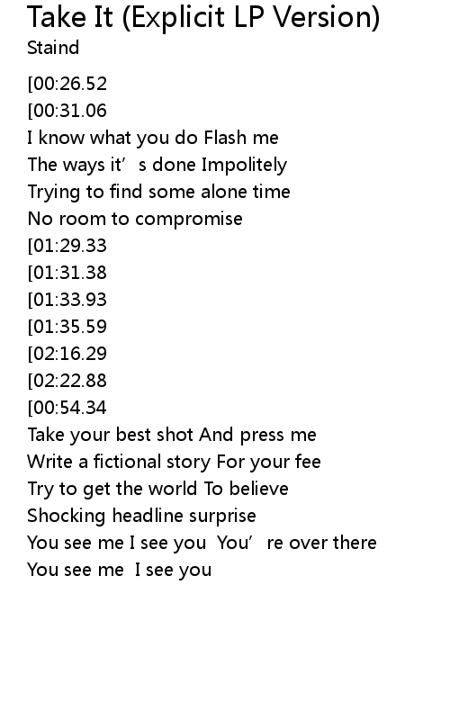 | [01:18.57][00:26.52][00:04.21] | Just take it take it |