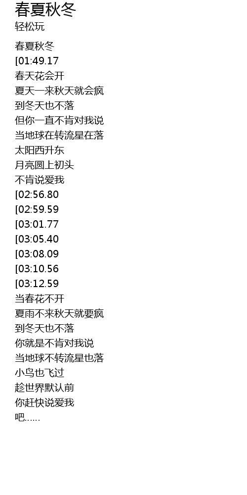 | [00:54.17] | 夏天一来秋天就会疯 |