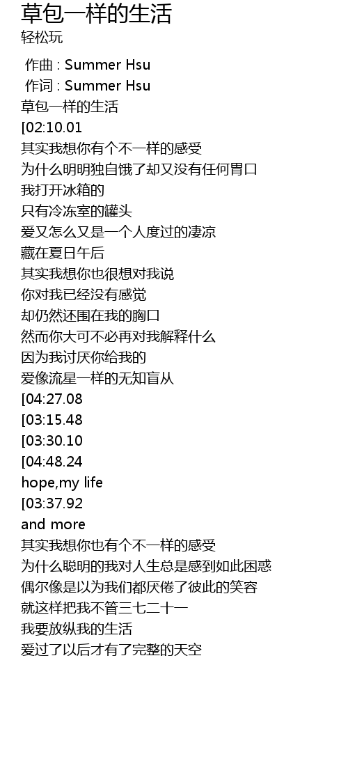 | [04:29.20][03:15.48][01:39.35] | 过你要的生活 |